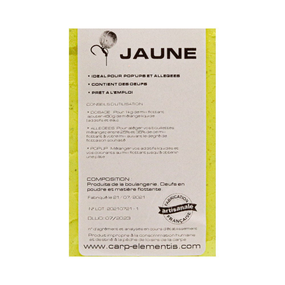 DOSAGE : Pour 300g de mix flottant, ajouter 135g de mélange liquide (additifs et eau)