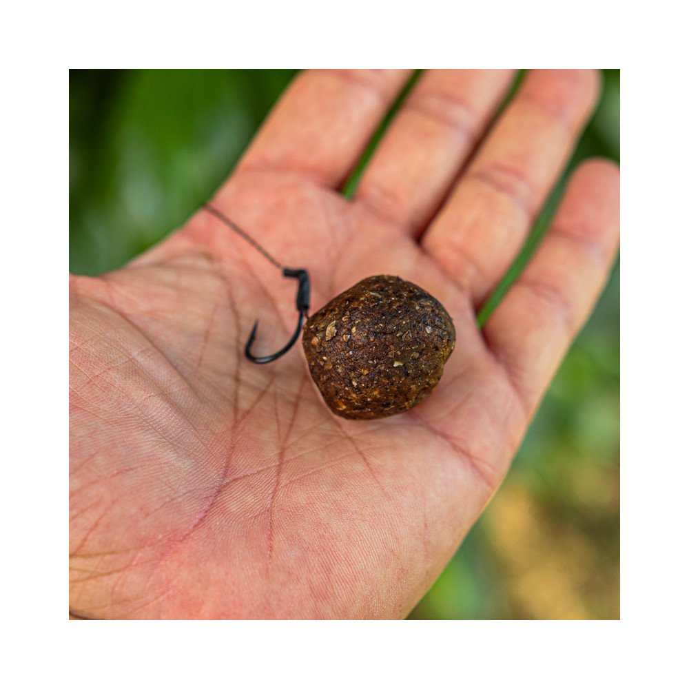 - Pour les pêches rapides (1h ou 2h), créez une boule de la taille d'une bouillette, protégez-la dans un filet anti-chat ou autre et mettez-la sur le cheveu