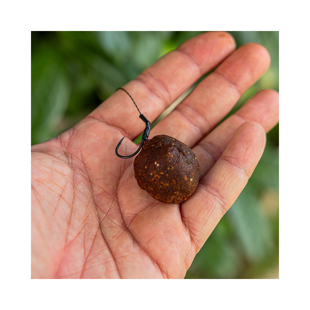 - Pour les pêches rapides (1h ou 2h), créez une boule de la taille d'une bouillette, protégez-la dans un filet anti-chat ou autre et mettez-la sur le cheveu