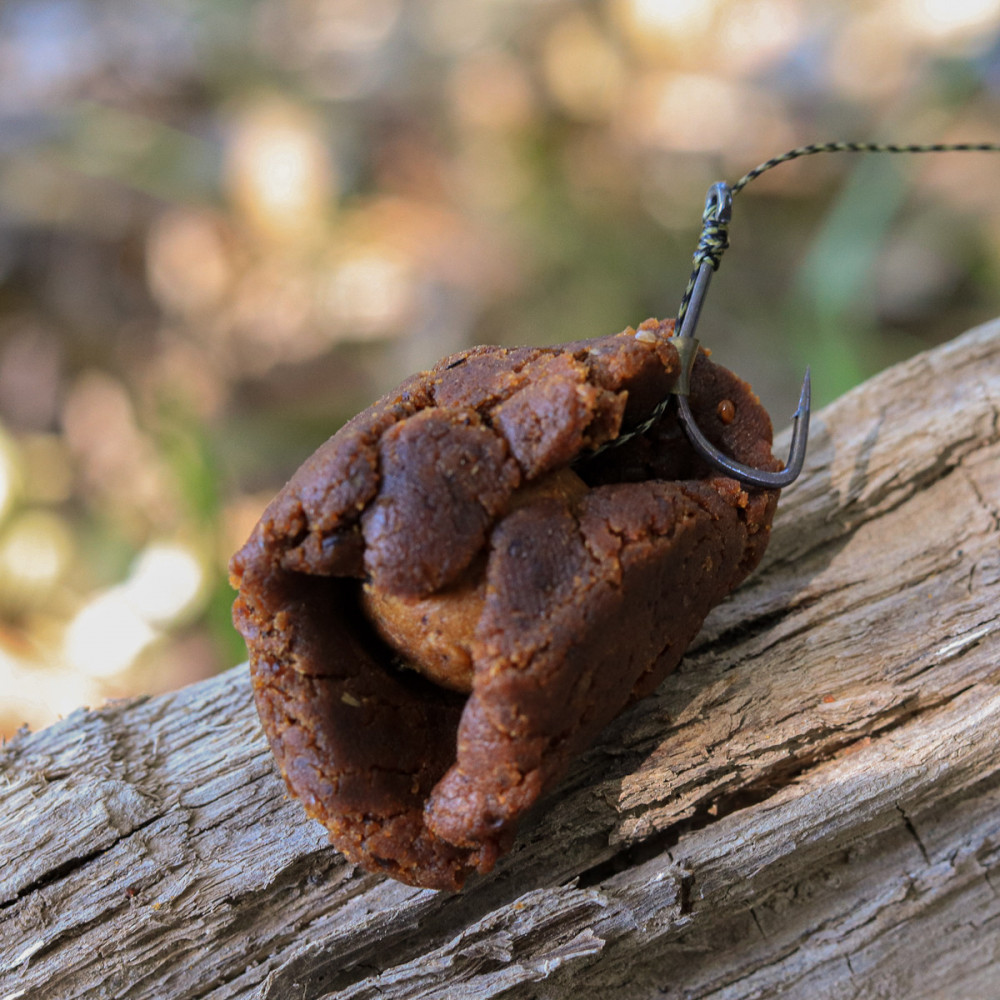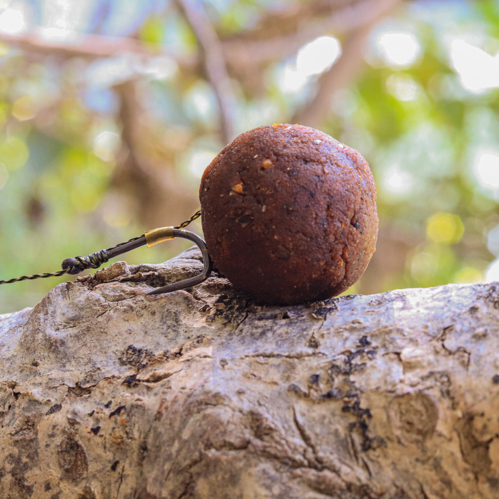 - Pour les pêches rapides (1h ou 2h), créez une boule de la taille d'une bouillette, protégez-la dans un filet anti-chat ou autre et mettez-la sur le cheveu