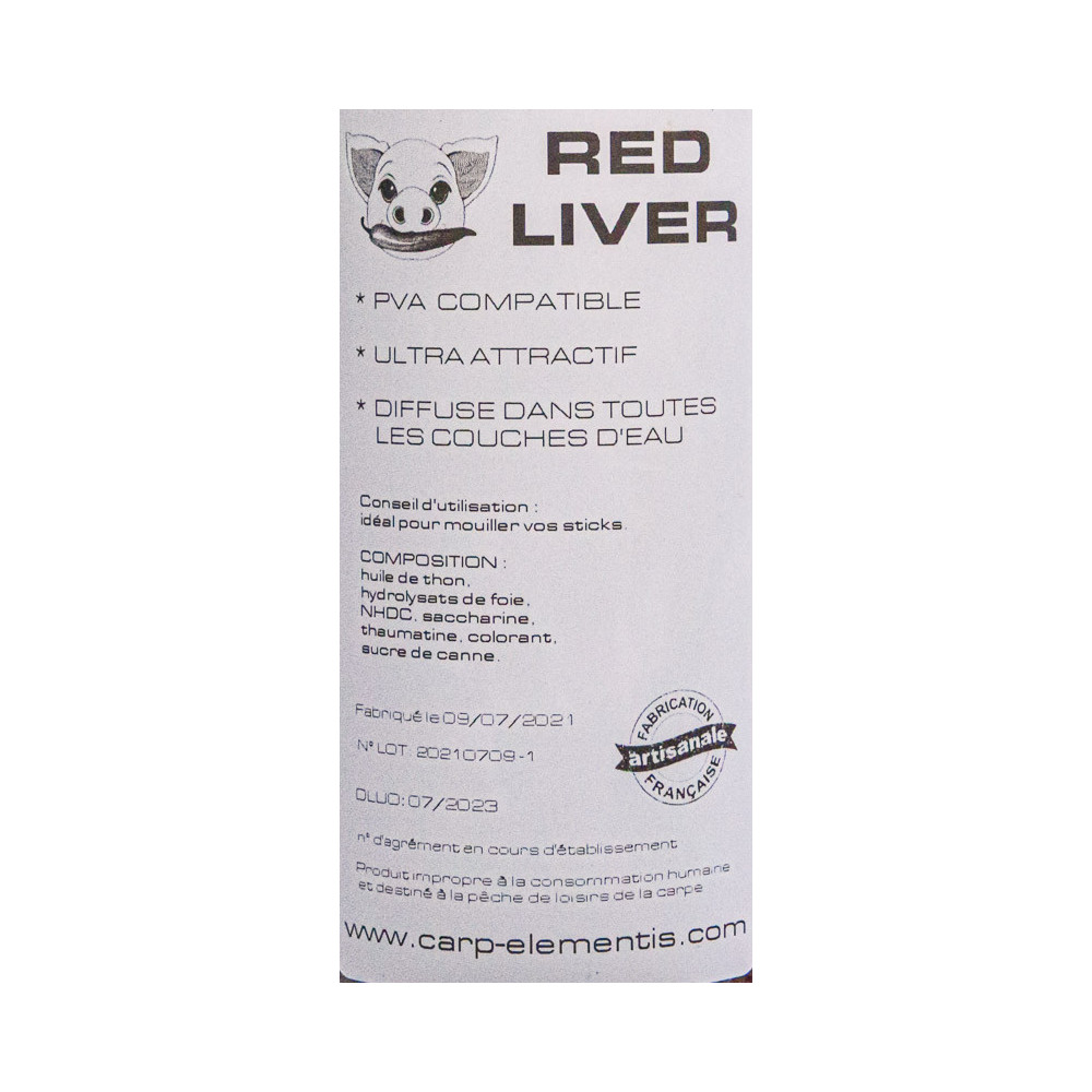- Contient les mêmes additifs liquides que les bouillettes Premium RED LIVER et Classic RED LIVER